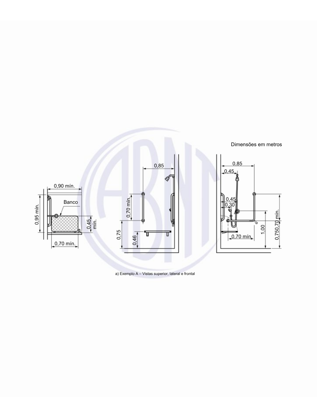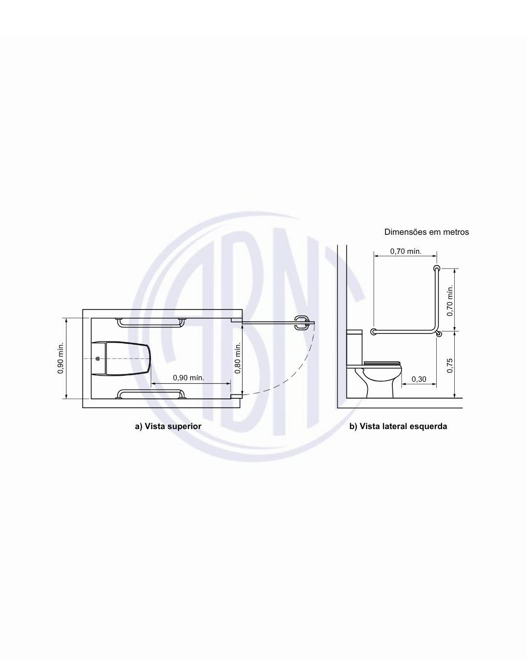 A instalação deve garantir que o trecho horizontal da barra esteja posicionado com o eixo entre 75 cm e 85 cm do piso acabado, alinhado ergonomicamente à altura da bacia ou da área de uso.