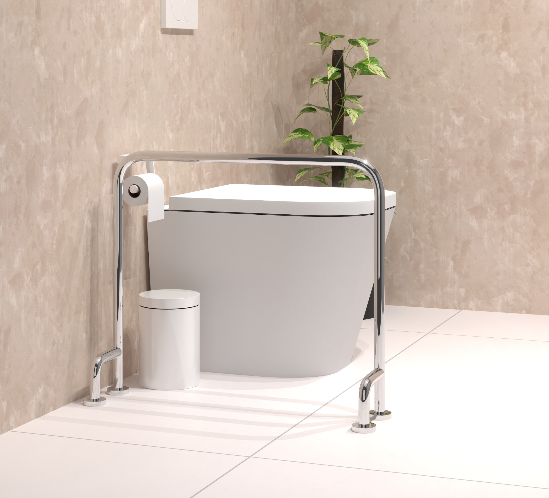 Essa solução é ideal para oferecer apoio lateral reforçado, aumentando a segurança, estabilidade e autonomia do usuário no ambiente.