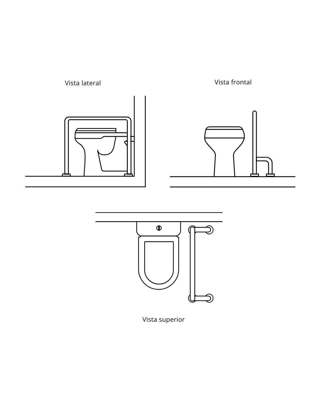 Seu posicionamento deve estar alinhado ao vaso sanitário, permitindo apoio lateral eficiente nos movimentos de sentar, levantar e transferência.